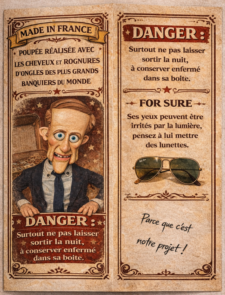 Se moquer des puissants n’est pas un excès, c’est une respiration. C’est rappeler que toute autorité peut être réduite à la taille d’un pantin, que toute posture peut être exagérée jusqu’à révéler sa fragilité. La marionnette permet cela : elle grossit les traits, déforme les certitudes, met en lumière les mécanismes de domination en les transformant en farce.